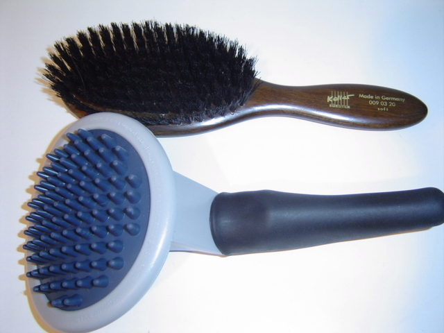 CARE BRUSH 上:ドイツ Keller社製天然猪毛ブラシ。 下:ハンドル付きのラバーブラシ。 ...............................................................